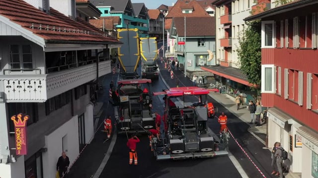 Die Oberlandstrasse wurde per Ende Oktober 2023 mit dem Einbau des Deckbelags fertiggestellt. Die Bauarbeiten verschieben sich nun an den Lötschenbergplatz, der bis zum Frühsommer 2024 fertiggestellt wird.